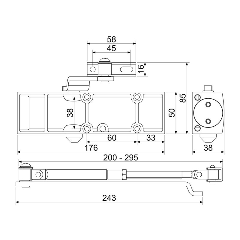 • maximális ajtószélesség 950mm és súly 65kg - EN 1154 szabvány szerint.