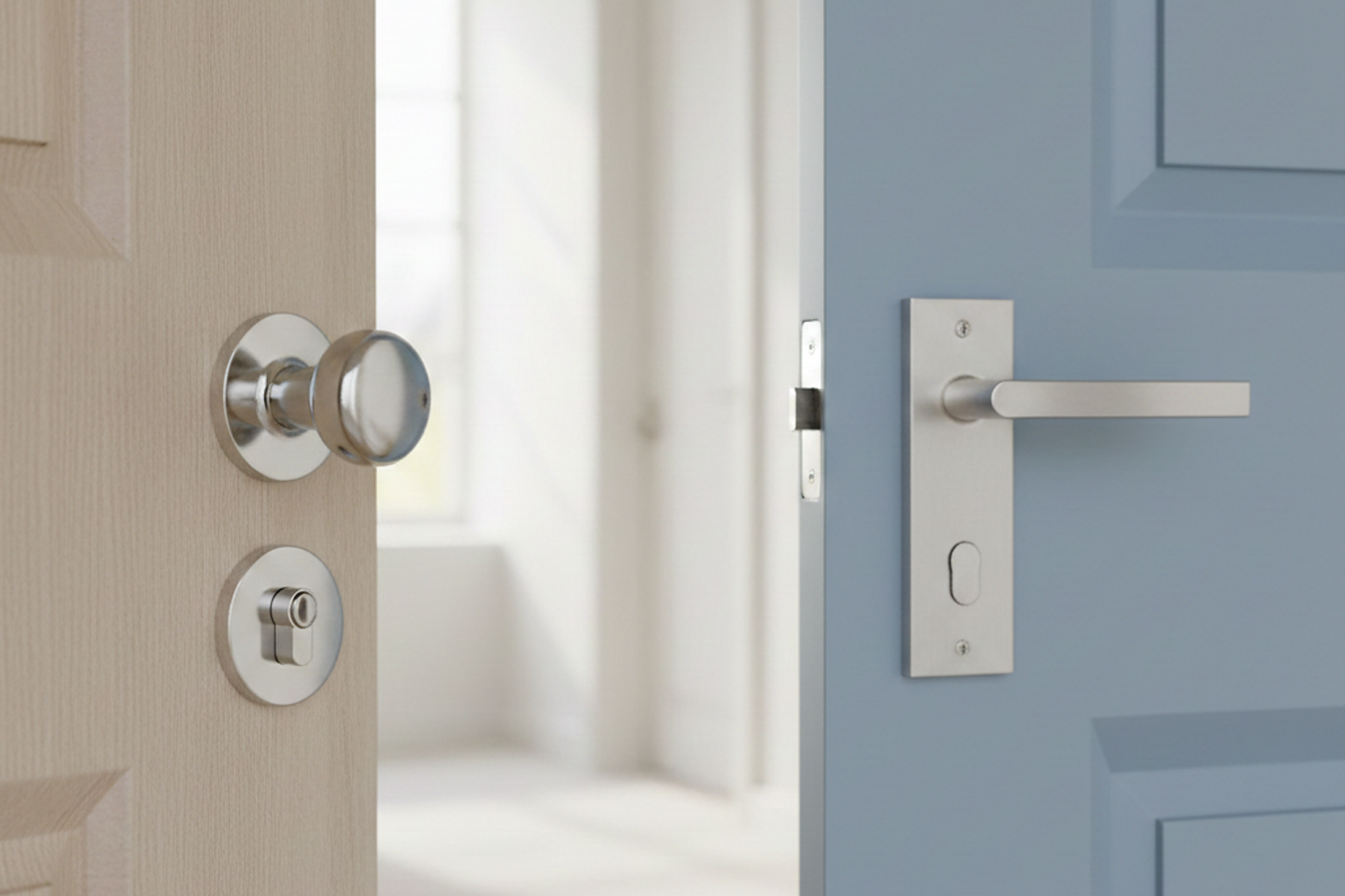- Matt fehér: Új, elegáns trend. Finomabb alternatíva a matt feketéhez képest, jól illik lágy és tompább árnyalatú ajtókhoz, különösen a skandináv vagy minimalista enteriőrökben.
