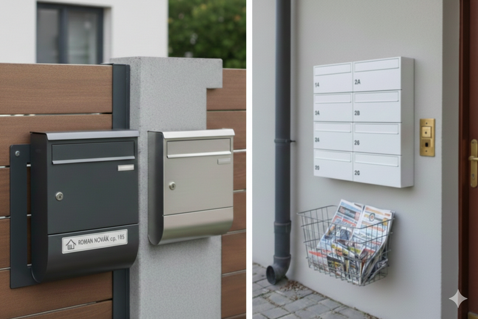 - Fali és kerti postaládák: Klasszikus modellek, amelyeket közvetlenül a homlokzatra, kerítésre vagy kapura szerelnek.