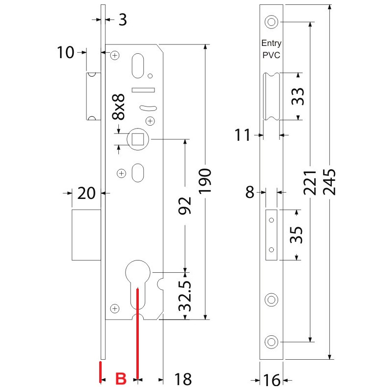 EN.P01.92.16.NIL PVC bevésőzár, PZ cilinderbetétes