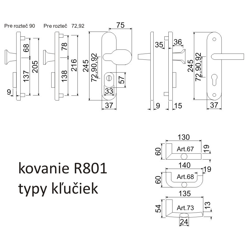 - Kilincstengely és kulcslyuk közti távolság 72, 90, 92 mm: