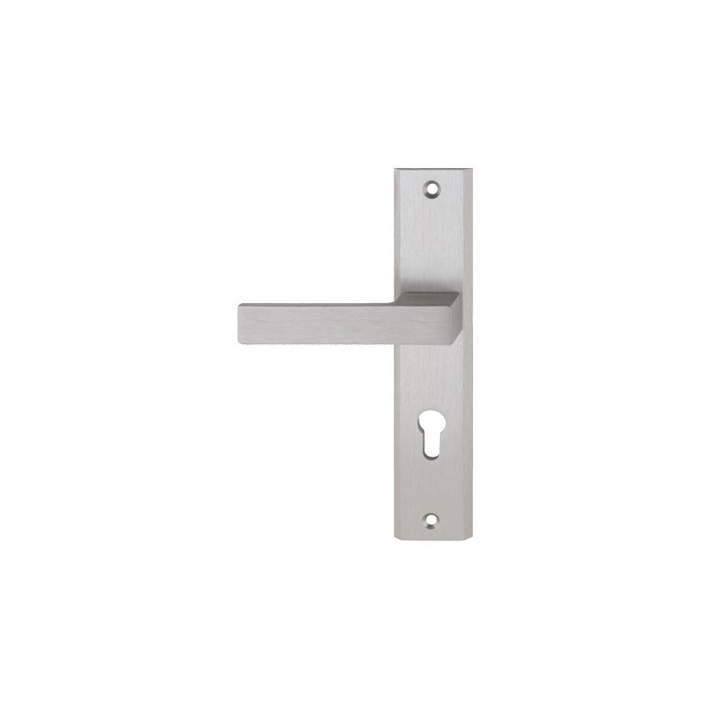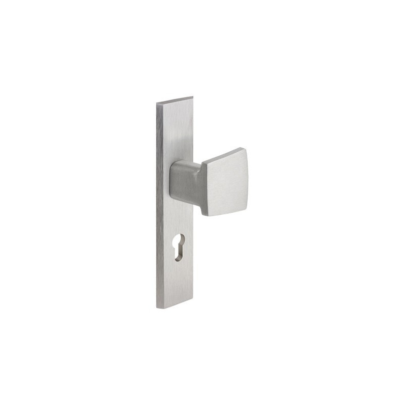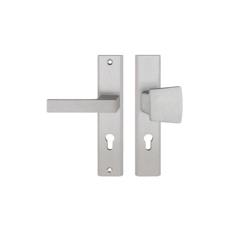 Kiváló minőségű, modern kilincs bejárati ajtóra gomb/kilincs kivitelben. Tömör alumínium, eloxált felülettel, amely hatékonyan védi a rozsdával szemben. A külső oldalán rejtett csavarhelyek vannak, így kintről nem láthatóak és nem lehet hozzájuk férni. A forgalomban lévő legtöbb bejárati ajtóra alkalmas. Ezen kollekció kilincsei INOX színűek. Rugós mechanizmussal erősített fogantyú része van, amely nagyban hozzájárul a kilincs hosszú élettartamához.