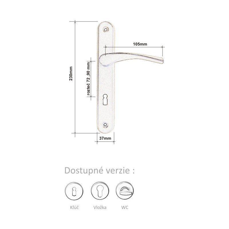 - Választható kilincstengely és kulcslyuk közti távolság : 72 mm, 90 mm
