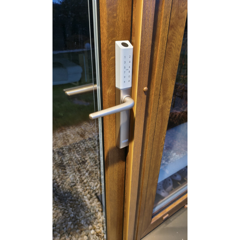 - Hitelesítés több módon: ujjlenyomat, IC kártya, számsor kód vagy a TTLock mobilalkalmazás használatával – nincs szükség hagyományos kulcsra.