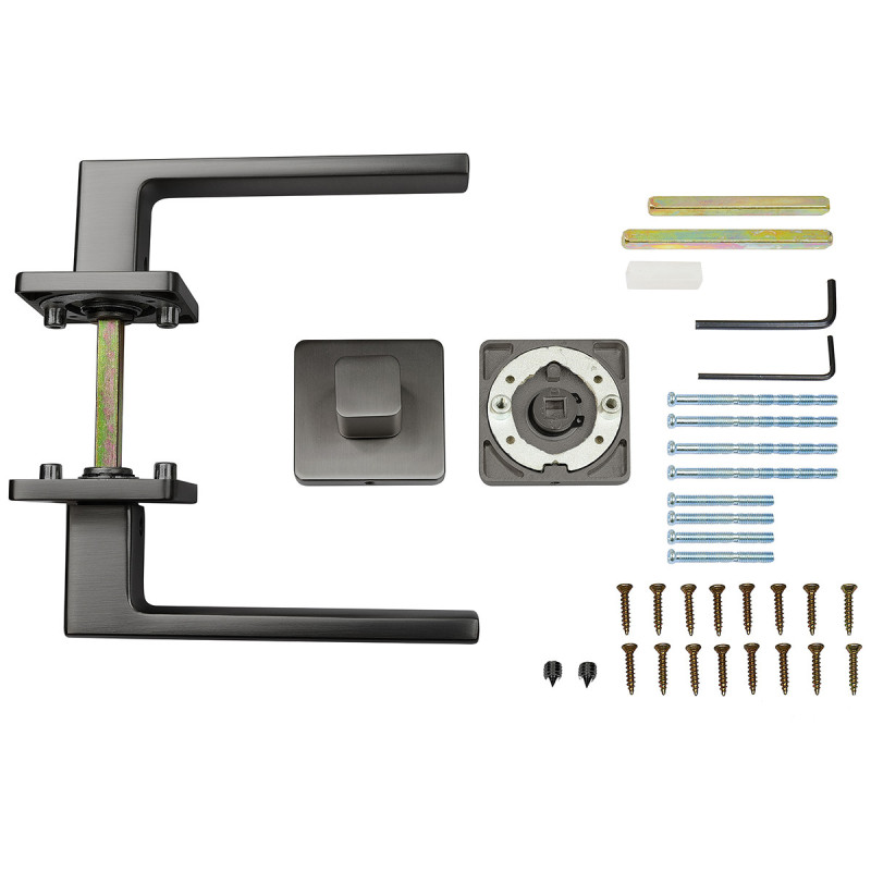 - Kilincs szett (2 db), alsó rozetta (2 db), szerelési segédanyag