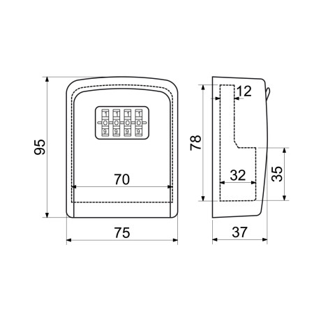 - Külső mérete sz/ma/mé : 75 x 95 x 37 mm