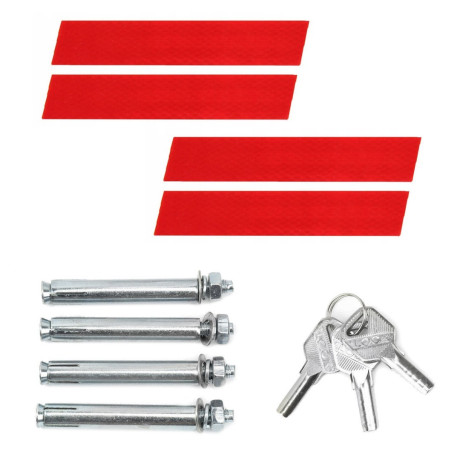 Összecsukható zárható parkolásgátló, mely erős és strapabíró. Minőségi anyagból készült.