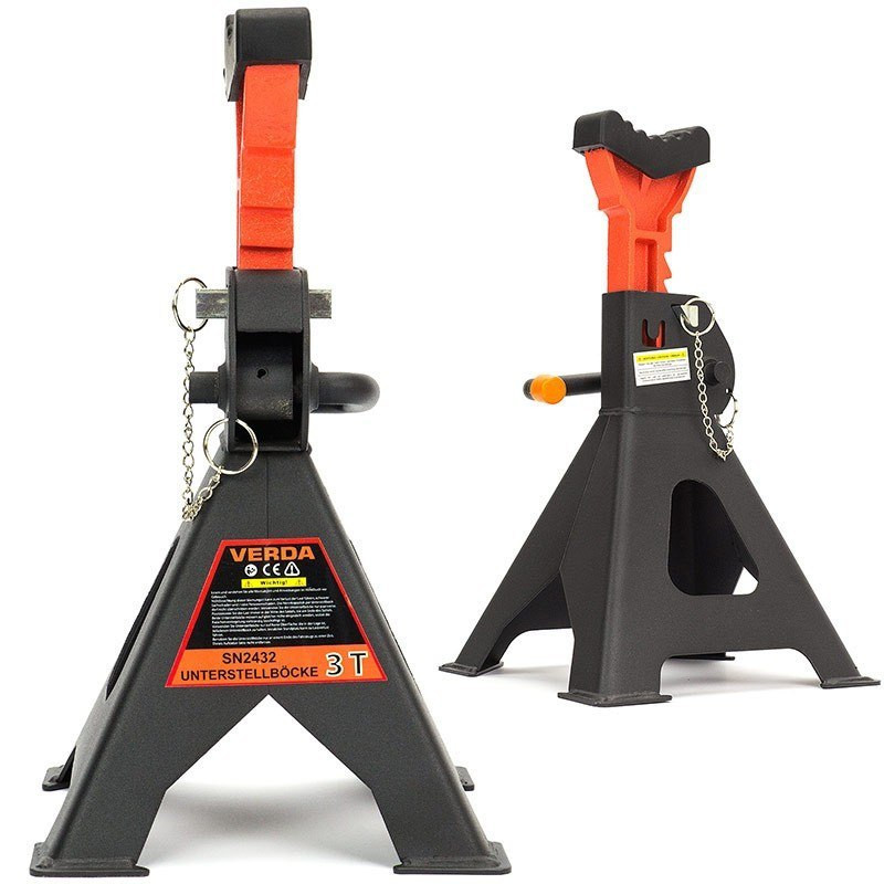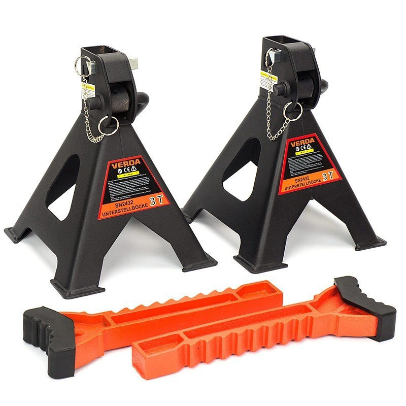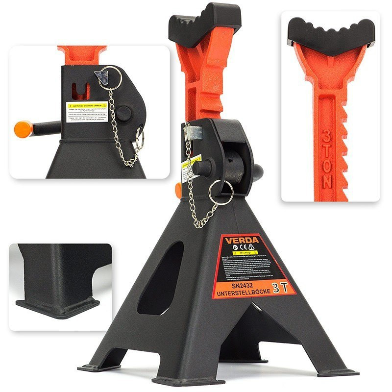 Autós autótámaszok 3T SN2432 – két darabból álló készlet, 3 tonna teherbírással, védőgumival és biztonsági csappal ellátva.