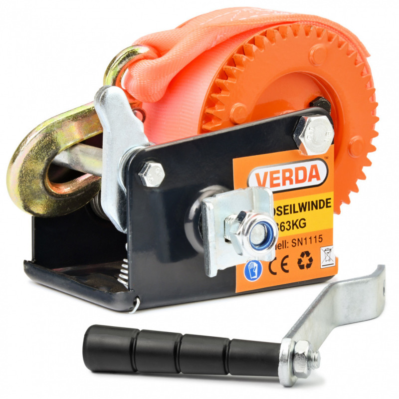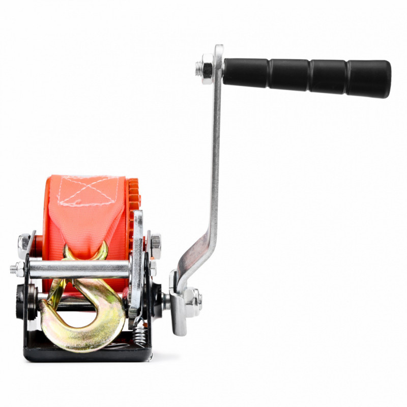 Masszív kézi hevederes csörlő kurblival, 360 kg húzóerővel