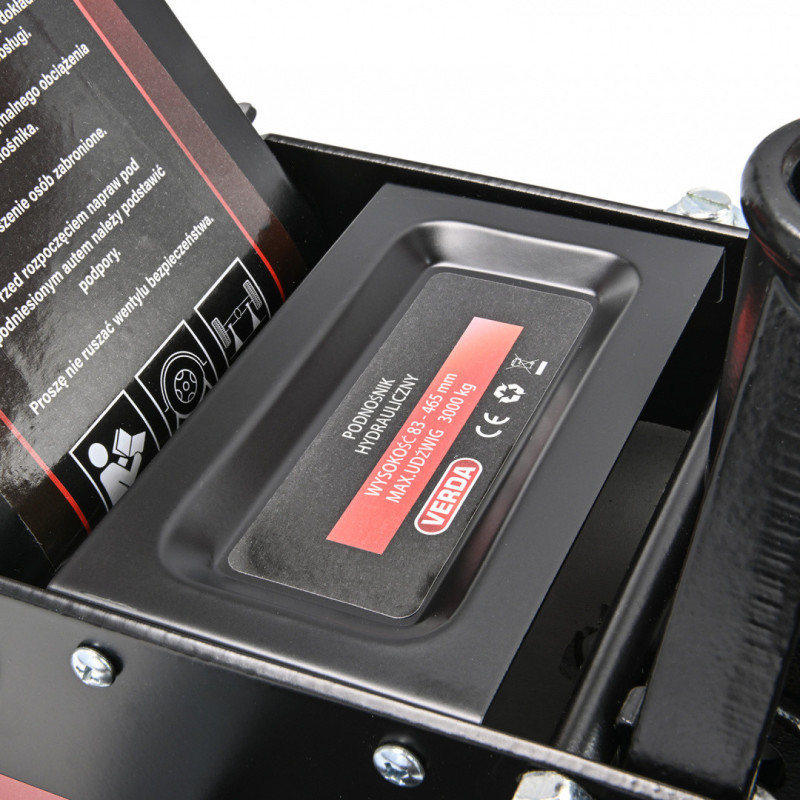 Alacsony profilú hidraulikus emelő, 3 tonnás teherbírással, amely gyors és zökkenőmentes emelést biztosít a 2 dugattyús megoldásnak köszönhetően.