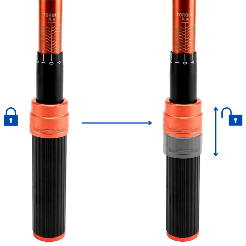 Rögzítő mechanizmus – megakadályozza a beállított nyomaték véletlenszerű túllépését. Amikor a kulcs eléri a beállított nyomatékot, a záró mechanizmus automatikusan leállítja a további forgatást