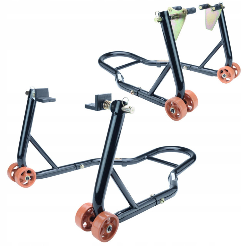 A csomag motorkerékpár-emelő állványokat tartalmaz: 1 db a hátsó lengővillához, 1 db az első teleszkópos villákhoz.