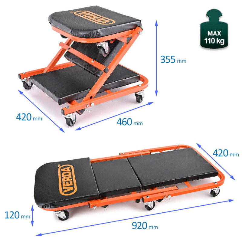 Kényelmes és komfortos ülő / fekvő - műhely szerelőpad