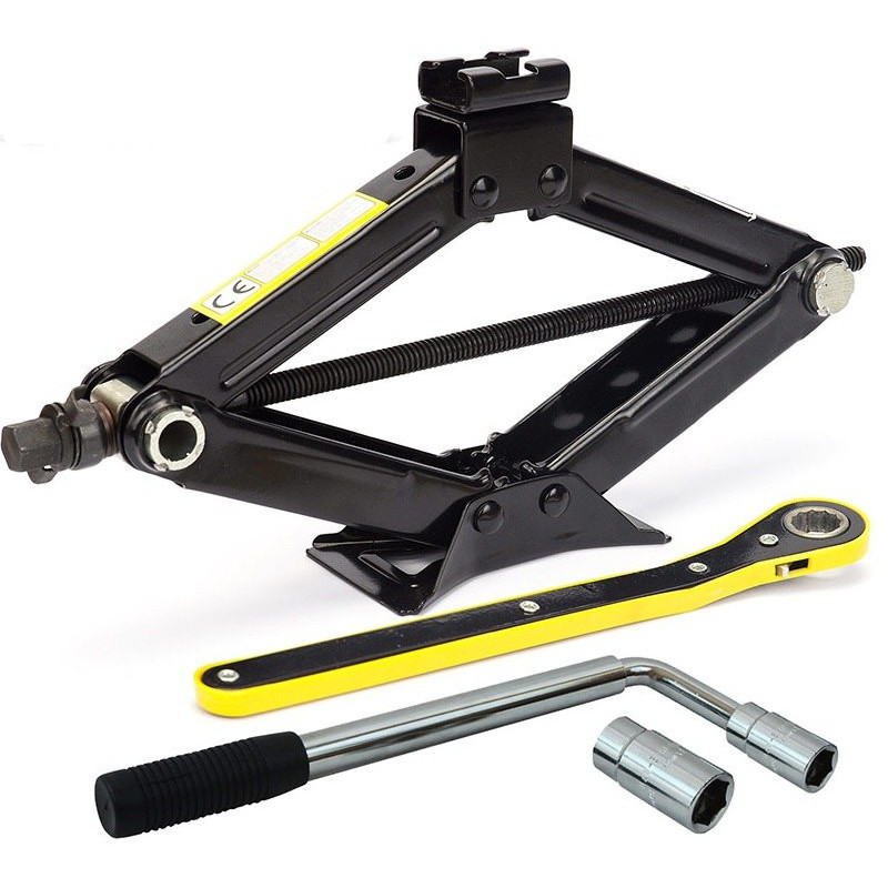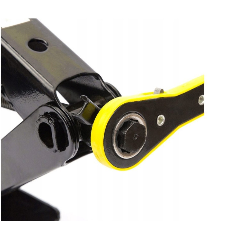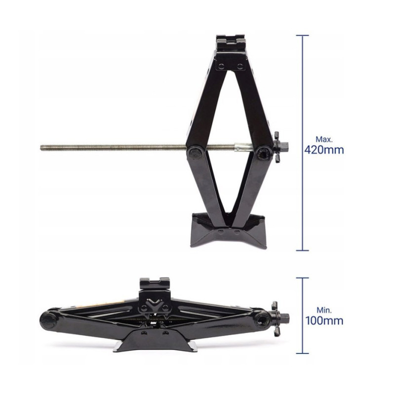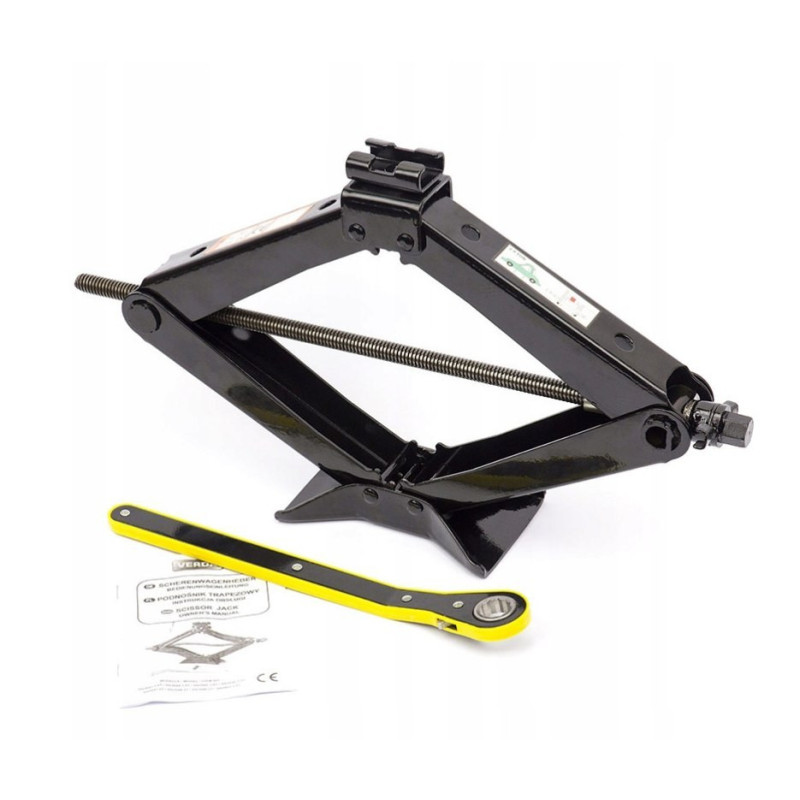 Trapéz alakú emelő 2 tonnás teherbírással és teleszkópos kerékkulccsal. Alapvető, praktikus mechanikus eszköz a jármű felemeléséhez kerékcsere során. Egyszerű és megbízható kialakítás.