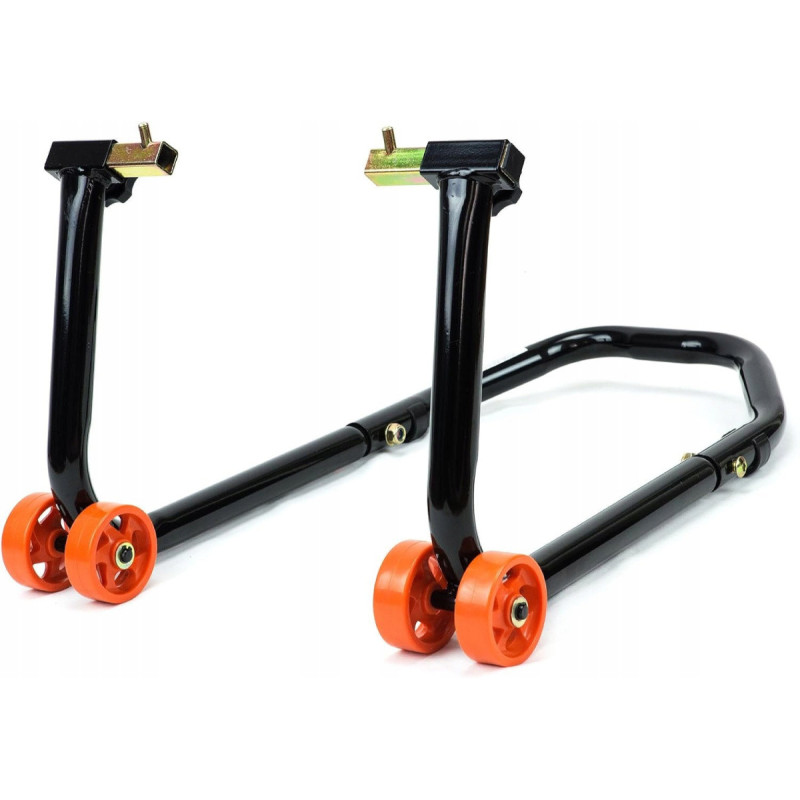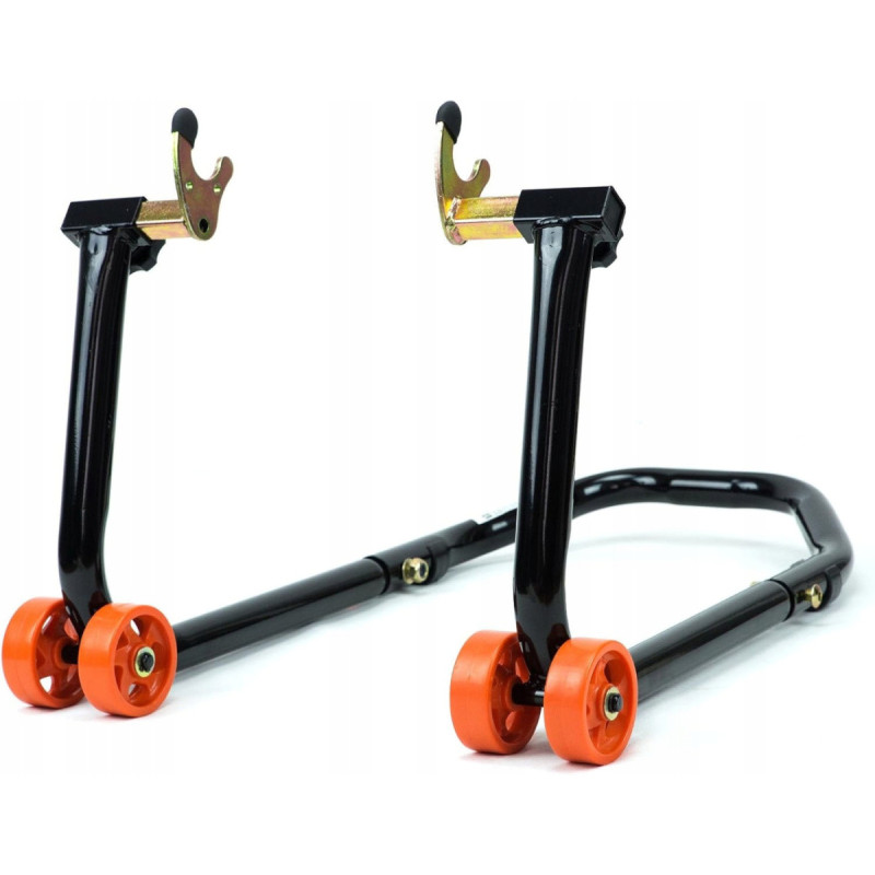 Univerzális motorkerékpár-állvány, amely felszerelhető első vagy hátsó emelőként is. A hátsó kerékhez kétféle adapter használható – a lengővillához vagy a spool (görgő) alá.