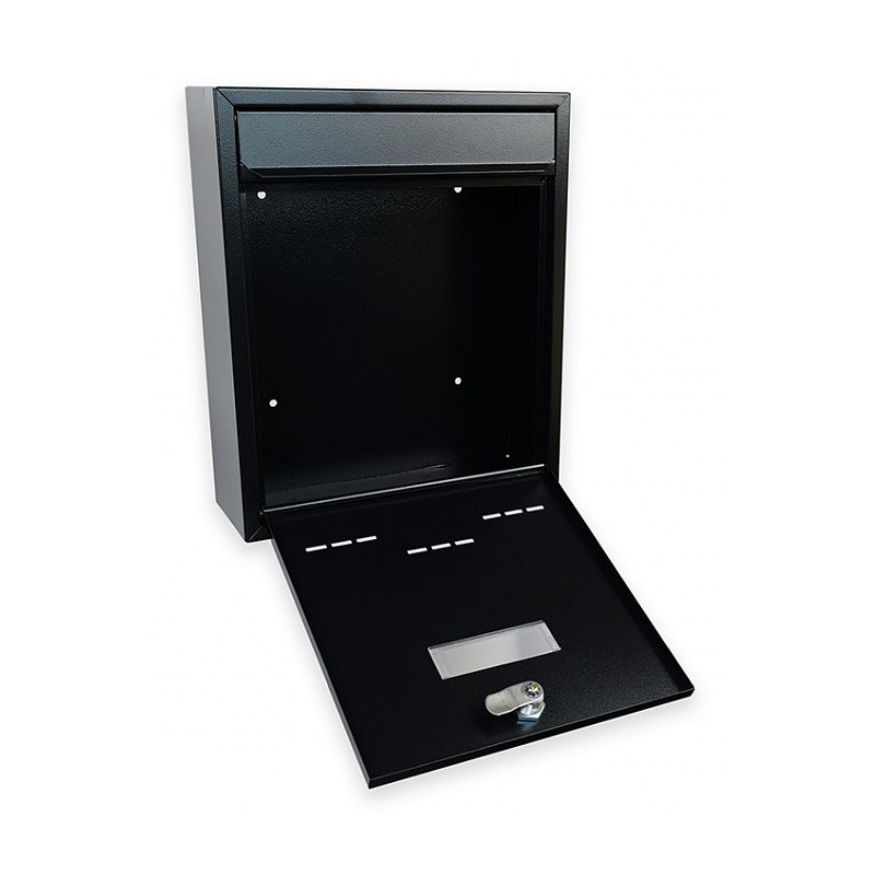 Acél postaláda eredeti perforációval a küldemények láthatóságához, amely összeállításokban történő használatra is alkalmas.