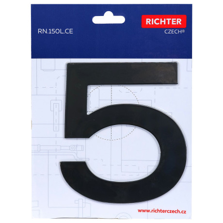 RN.150L.5.CE szám "5" 150mm matt fekete