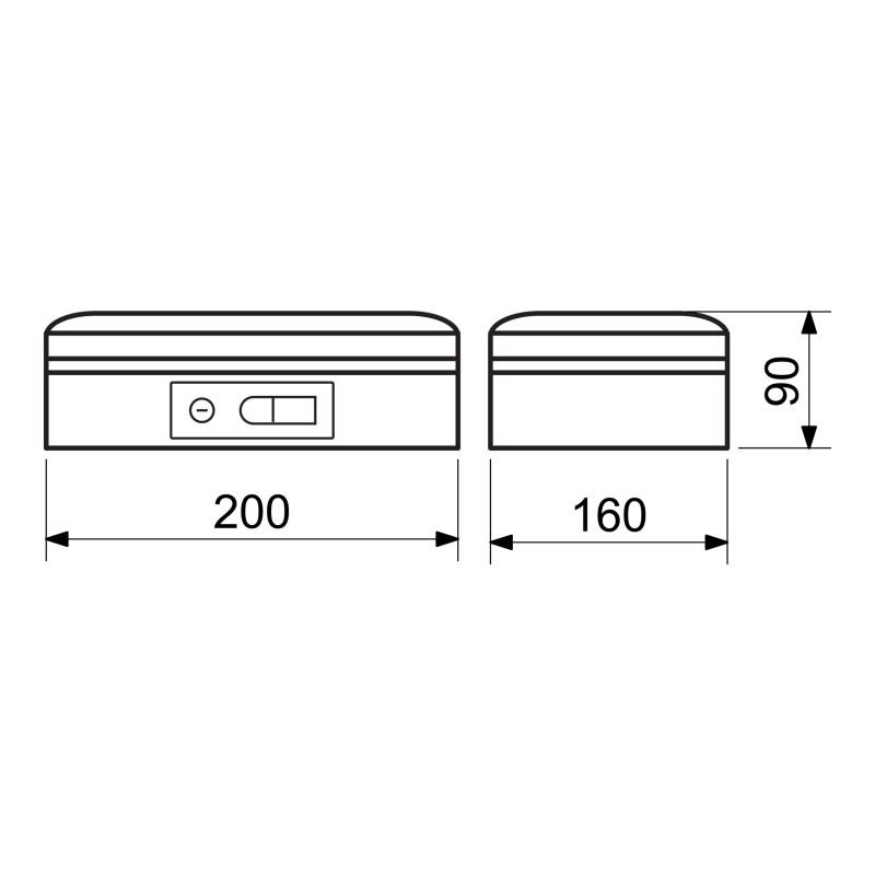 Méretek (sz × m × h): 200 × 90 × 160 mm