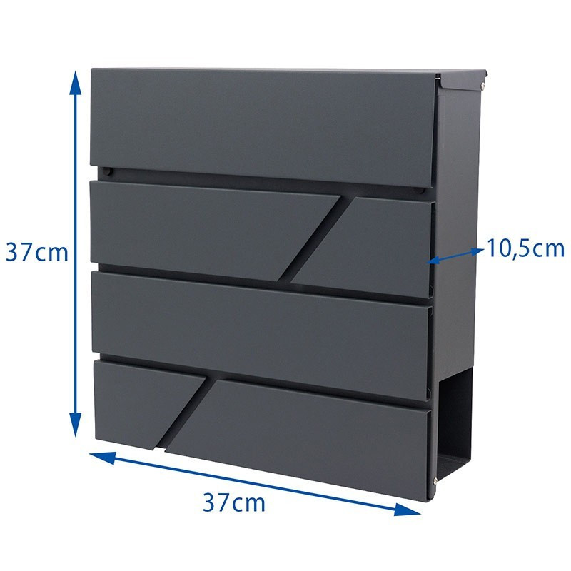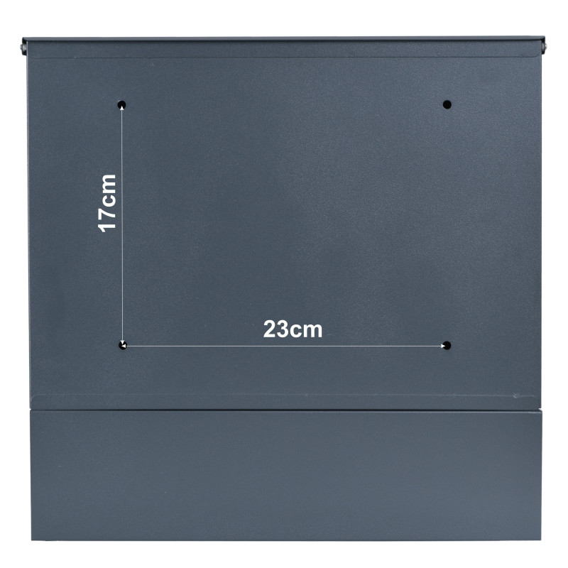 A felhasználó kényelme és az aktuális esztétikai trendek figyelembevételével tervezték. Egy további rekesszel van felszerelve újságok és nagyobb szórólapok számára. A postaláda felső fedele nagyon jól védi a küldeményeket a nedvességtől és az esőtől. A készlet rögzítőcsavarokat tartalmaz, míg a furatok a doboz hátulján vannak előkészítve - a gyors és egyszerű felszerelés érdekében.