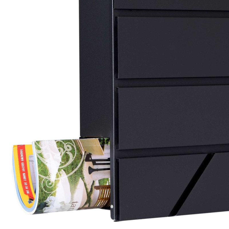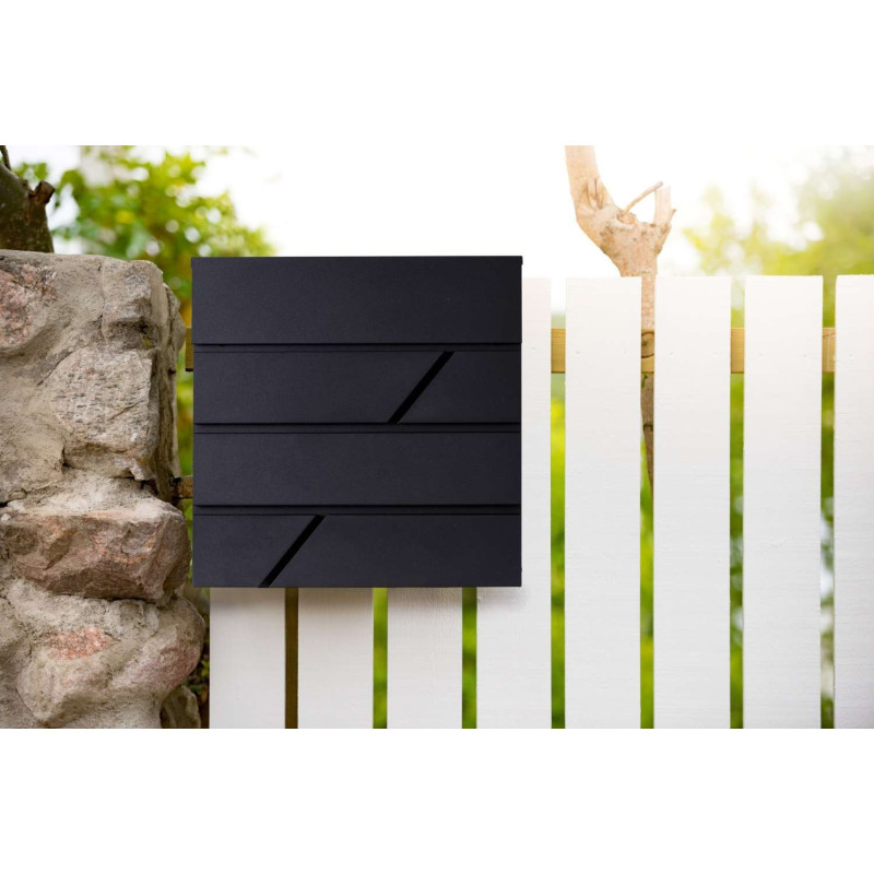 A felhasználó kényelme és az aktuális esztétikai trendek figyelembevételével tervezték. Egy további rekesszel van felszerelve újságok és nagyobb szórólapok számára. A postaláda felső fedele nagyon jól védi a küldeményeket a nedvességtől és az esőtől. A készlet rögzítőcsavarokat tartalmaz, míg a furatok a doboz hátulján vannak előkészítve - a gyors és egyszerű felszerelés érdekében.