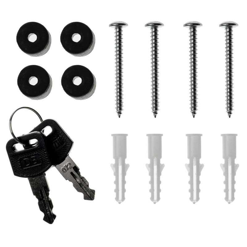 - 2db kulccsal és szerelési segédanyaggal (4db csavar)