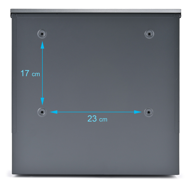 Időjárásálló anyagból, így biztosított küldeményei védelme. A felhasználó kényelme és az aktuális esztétikai trendek figyelembevételével tervezték. Egy további rekesszel van felszerelve újságok és nagyobb szórólapok számára. A postaláda felső fedele nagyon jól védi a küldeményeket a nedvességtől és az esőtől. A készlet rögzítőcsavarokat tartalmaz, míg a furatok a doboz hátulján vannak előkészítve - a gyors és egyszerű felszerelés érdekében.