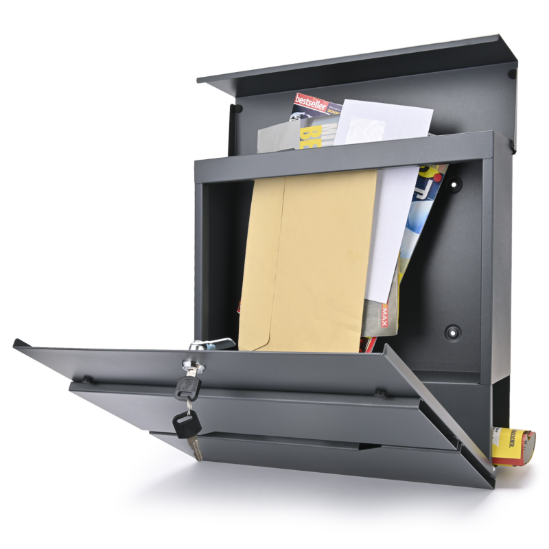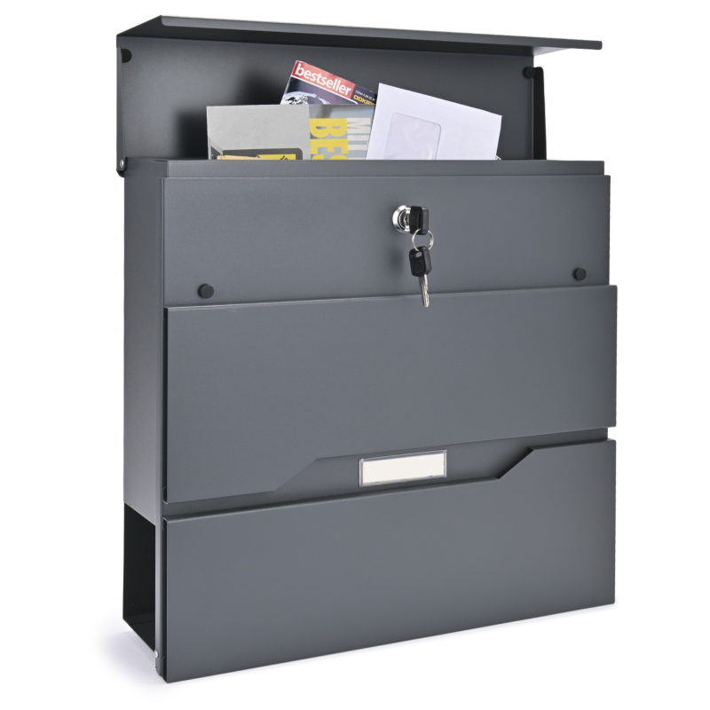 Minőségi postaláda horganyzott acélból , porfestett felülettel, antracit színben. modern - időtlen stílusban.